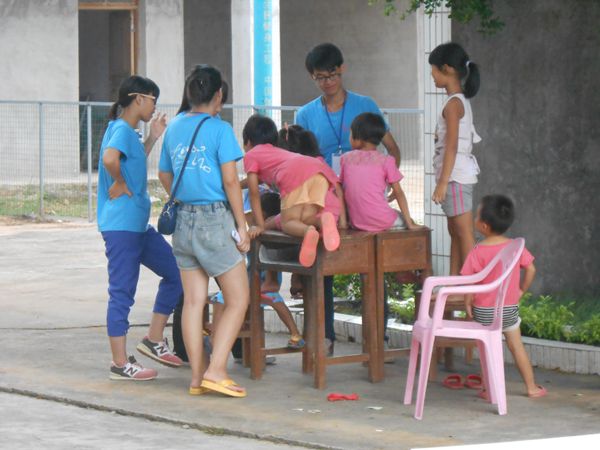 也许是因为留守儿童较孤单的缘故,孩子们会很早来到学校,有时候,队员们会放弃午休时间与孩子们聊天、玩耍。我们会和他们聊家常,讲笑话,玩游戏或是谈理想。我记得有个男孩说自己成绩不好,打算读完初中就不读了,我跟他说了许多,鼓励他要努力学习,不能放弃。他有许久的沉默,似乎懂我的话,我希望他真的懂,希望再过几年能听到他上大学的消息,希望他愿意踏着我们给他筑的通往梦想的桥,拥抱他的未来。