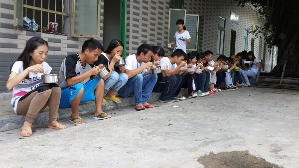 第一次离开家庭独立生活十日,我加入后勤组,负责买菜、煮饭、照顾好队员们的饮食。在家千日好,出门一时难,更别说我这个在家基本不做家务的男生。每一天,为了让支教组的队友们能在早读之前吃到早餐,后勤组要负责六点就起床煮粥,这对习惯晚起的我无疑是一个挑战。每天早上,我匆匆吃过早饭,便骑上20分钟的单车到集市买菜。艳阳高照,汗流浃背冲向高坡,每一次都弄得我我气喘吁吁。最要命的是,因为预算有限,30人的队伍,一天两餐只有200块。这让本来是体力活的后勤工作,变成了脑力劳动。望着高额物价,我冥思苦想,要怎么才能做出一顿合格的饭菜。
