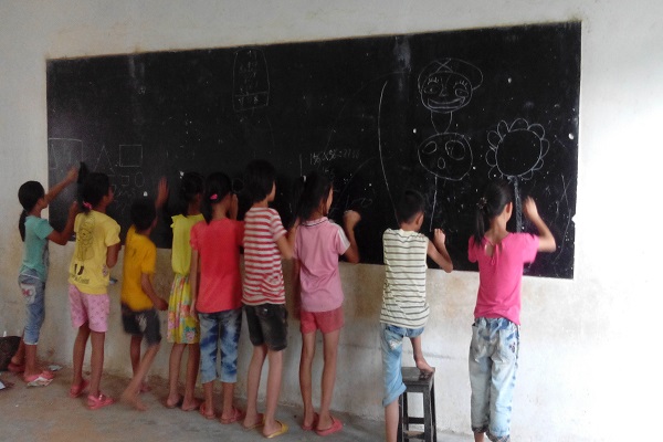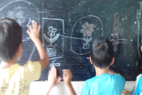 刚上完耐人寻味的数学课,许产小学二年级的学生迎来了他们第一节美术课。在老师教授关于如何画画的基本功之后,便让同学们在前后两面黑板上开始了他们的画画旅程。看着同学们一副认真的摸样,任课老师表示很开心,希望同学们能继续以这种态度坚持下去。