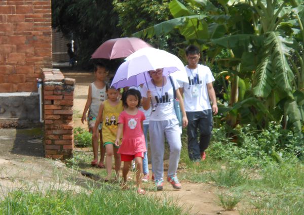 一路上,我们大手拉着小手,或是聊聊家常,或是唱唱歌,或是说说梦想。即使太阳很猛烈,晒得我们一个个汗流浃背;即使道路很泥泞,把我今早才穿的白鞋子染上又黑又脏的泥巴;即使道路很遥远,走得我们双腿发酸,但当我们看到小朋友一个个回到父母身边露出甜美的笑容时,我们觉得什么劳累都消失了,心中也充满了欣慰。