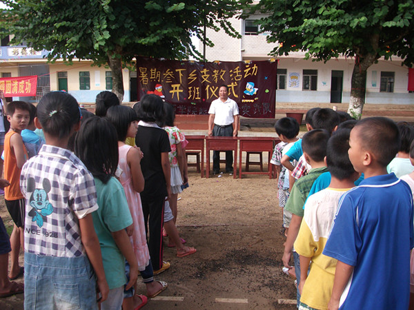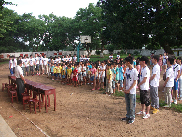 7月11日早上,领南师范学院龙鸣社会实践队在徐闻曲界镇龙门小学举行了隆重的开班仪式。龙门小学的校长戴有如、各位任课老师、实践队的全体队员以龙门小学各年级参与本次活动的小朋友参与了此次活动。