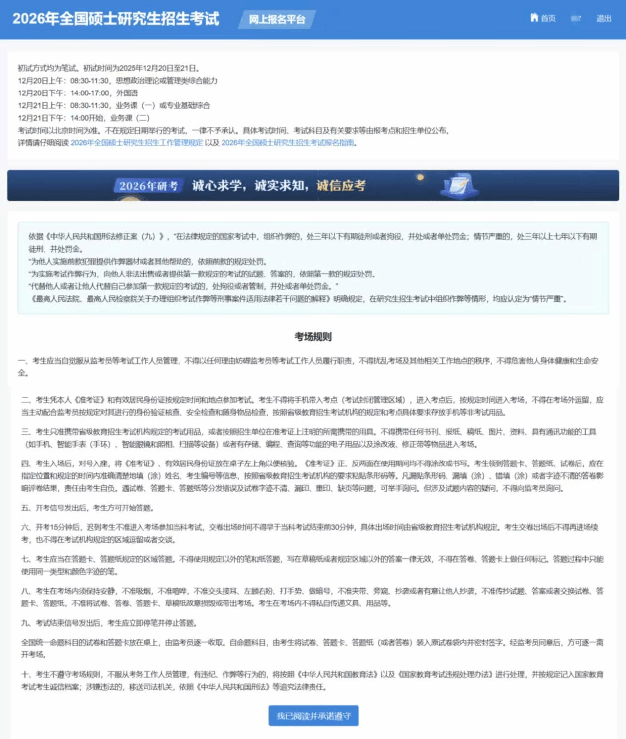 点击“我已阅读并承诺遵守”按钮后,进入省级教育招生考试机构公告页面。