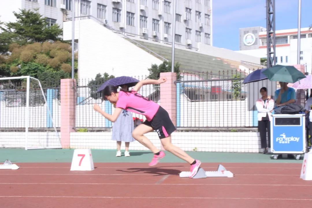 在200米赛道的起点上,裁判员举着发令枪,一声“预备!”,选手们蓄势待发。“砰!”枪声响起,观众席上传来接连不断的呐喊助威声,健儿们迅速起身、抬腿、摆臂,拼着一股劲往前方终点冲去。其中第五道选手梁国祥以25.19秒的成绩获得男子普通组200米决赛第三名。镜头转到女子普通组200米第三赛道的黄雯彩选手,赛场上的她翩若惊鸿、婉若游龙、奋力而奔,以32.89秒获得该项目第八名的成绩。