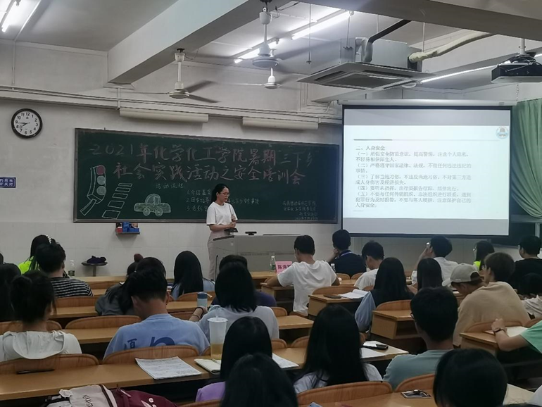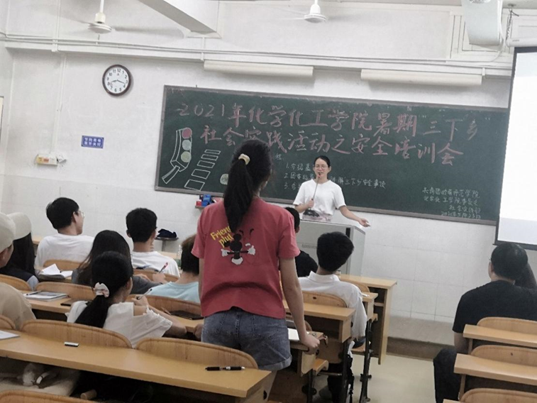 为了增强学生安全意识,确保暑期“三下乡”社会实践活动顺利开展,我院团委社会实践部于5月23日晚上,在燕雷楼C栋401室举办2021年化学化工学院暑期“三下乡”社会实践活动之安全培训会。学院辅导员老师陈海娇、团委副秘书长等出席本次会议。
