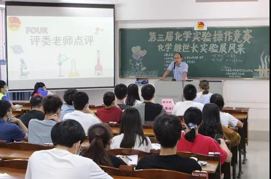 谢木标对本次比赛进行了点评,他指出,化学实验操作竞赛是一项有效提升学生实验基本操作能力的活动,希望团委能继续将比赛做得更好。他强调实验安全问题关乎学生的生命安全,在平时的实验操作过程中要特别注意规范操作,“小到滴管,大到贵重仪器的操作都要规范,每一个实验细节都需要认真注意。”同时,他还建议选手们要丰富化学实验知识储备,明确实验的操作原理,将理论和实践紧密结合。薛茗月则提出,参赛选手们要严格化学专业用语读、写的规范化,同时,还应注重规范实验的操作细节。