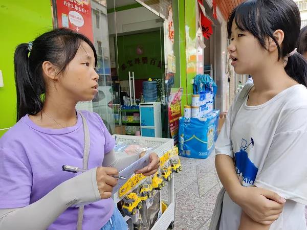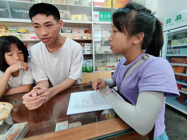 实践队队员们大部分都是初次参与调研活动,由于缺乏调研实践经验,调研活动对每一位队员都是一次挑战。队伍以家庭教育为调查重点,首站访问的是一家药店,以调查问卷上的内容为基础与药品销售员进行深入交流。据了解销售员的孩子在镇上的一所私立幼儿园上学,她认为私立幼儿园的教职人员责任心比公立幼儿园强。她像很多忙碌的家长一样,这位售货员虽然心里有亲身教导孩子的意愿,但缺乏相应的时间去陪伴孩子、教育孩子。她认为家庭对孩子的教育作用不大,学校要承担主要教育责任。她希望老师们能够更全面地教育孩子,让家长省心。