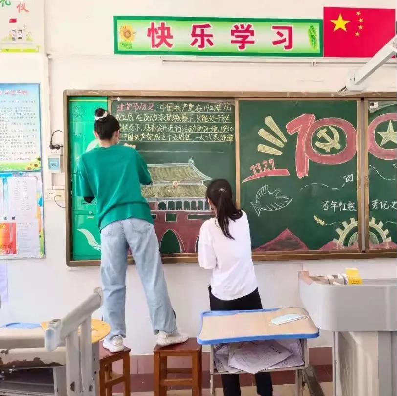 为深入学习宣传习近平新时代中国特色社会主义思想,贯彻落实习近平总书记关于青年工作的重要思想,响应国家号召,引导青少年传承红色基因,以实际行动庆祝中国共产党成立100周年。7月10日岭南师范学院“红星照我心”社会实践队来到马踏镇马踏中学给学生们进行了黑板报宣传和海报宣传,对优秀红色文化进行宣讲,让更多人了解党,了解红色文化,促进优秀的革命精神与新时代精神相结合,紧随新时代发展,让红色基因得到更好的传承。在此之前队员们热烈讨论、进行队内分组,明确了活动的中心主题并制定了随后几天的内容安排,全心全意为社会贡献出自己的一份青春力量。