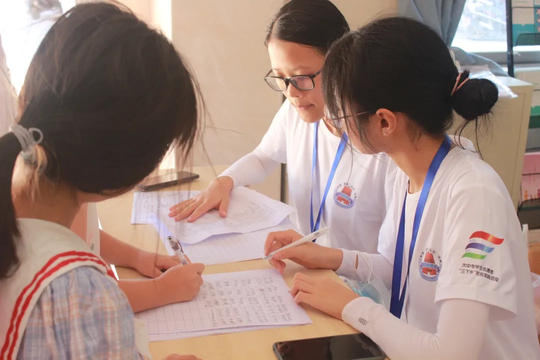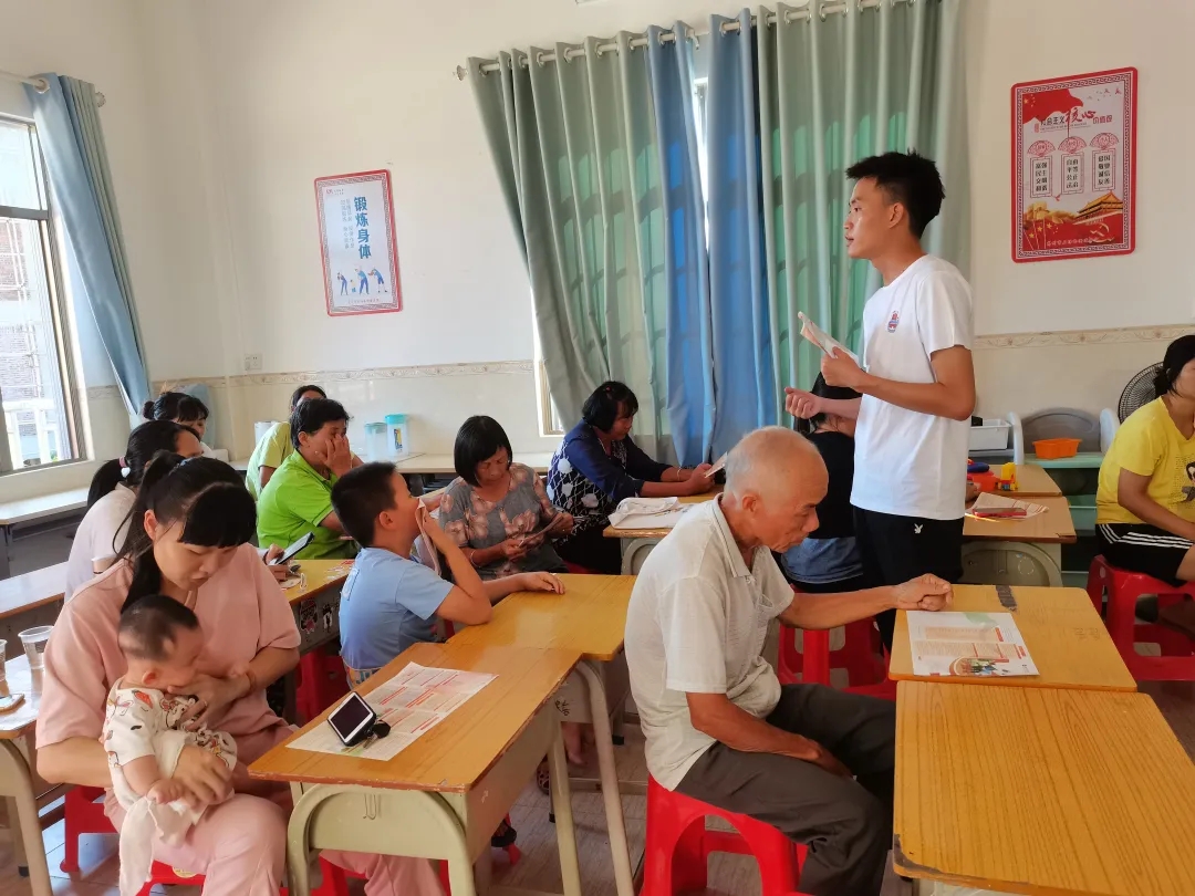 下午我们统一身着岭师校名字样与带有杏坛实践队的队徽的白色衬衫,来到茂岭村社工站参加乡村振兴服务教学活动。