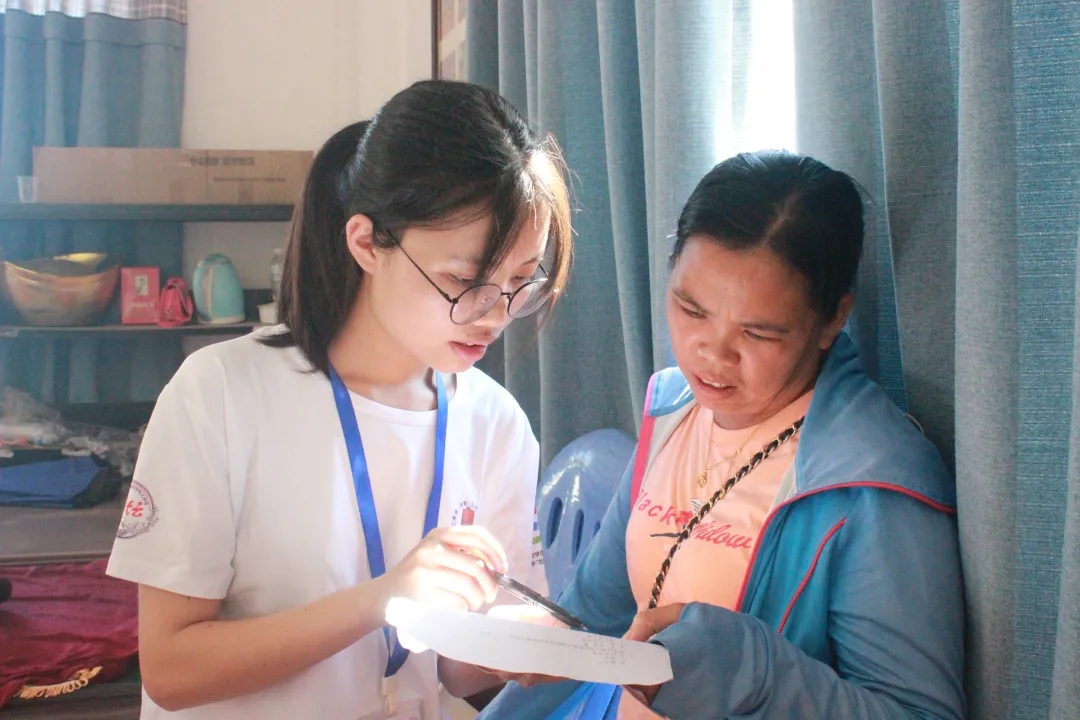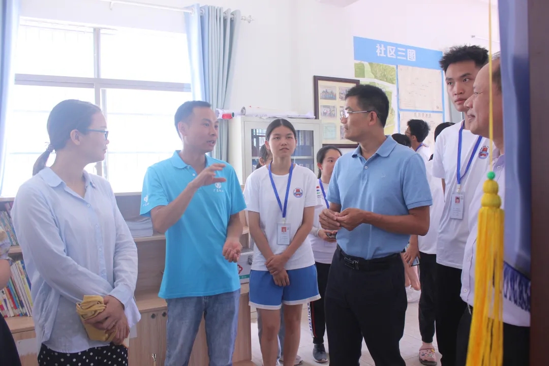 过了许久,岭师化学院的众多领导下乡视察学院三下乡队伍的活动进度,院领导们来到茂岭村社工站。杏坛调研社会实践队队长朱浩如和队员们一起会见了院领导,向院领导大致汇报了目前的工作进度和接下来的工作计划。