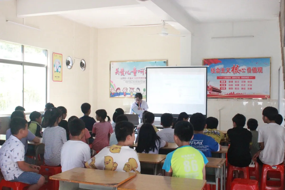 其中重要的环节支教组组长蔡东妤进行的安全教育讲座,给小朋友们听关于食物安全、体育安全、用火关于打火机的安全等等,与学生息息相关安全问题,她认真地给学生讲述安全教育,将自己渊博的知识化为简单易懂的话语帮助小学生们更好的提高自己的安全意识。
