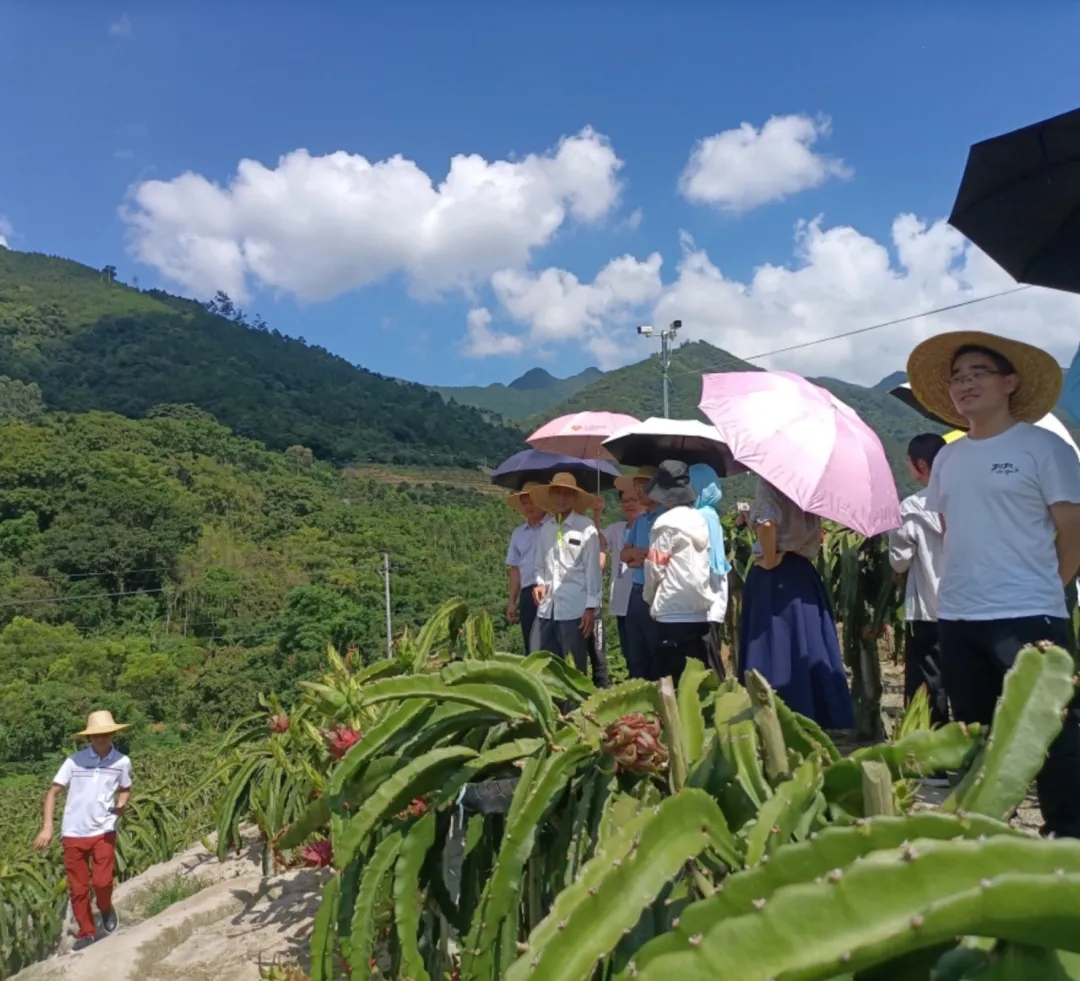 7月12日,化学化工学院书记赵海波在副书记李鳳煉,薛茗月教授,卢训博老师,陈海娇老师的陪同来到“薪火•启航”社会实践队调研基地—黄姜坡火龙果基地进行视察指导,对“薪火•启航”的工作给予肯定和表扬,对实践队的未来工作提出了新的要求和期望。