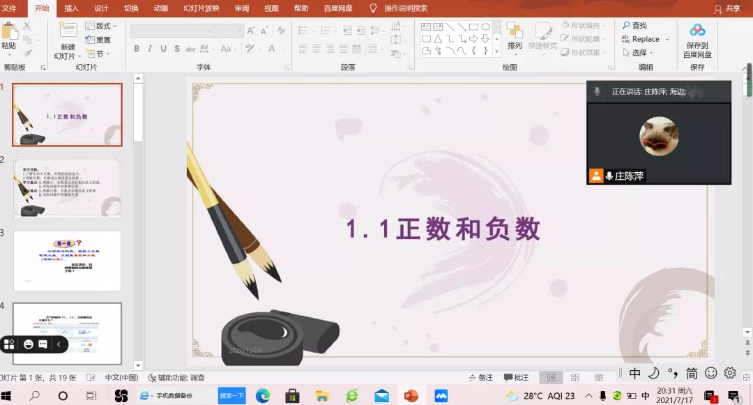 庄陈萍授课的内容是:正数和负数。把正数和负数结合到生活中的事物来讲课,并且教学的课件新颖,里面含有问题的思考、知识重点等,不仅提高学生思考问题能力,也有助于学生理解上课的内容。