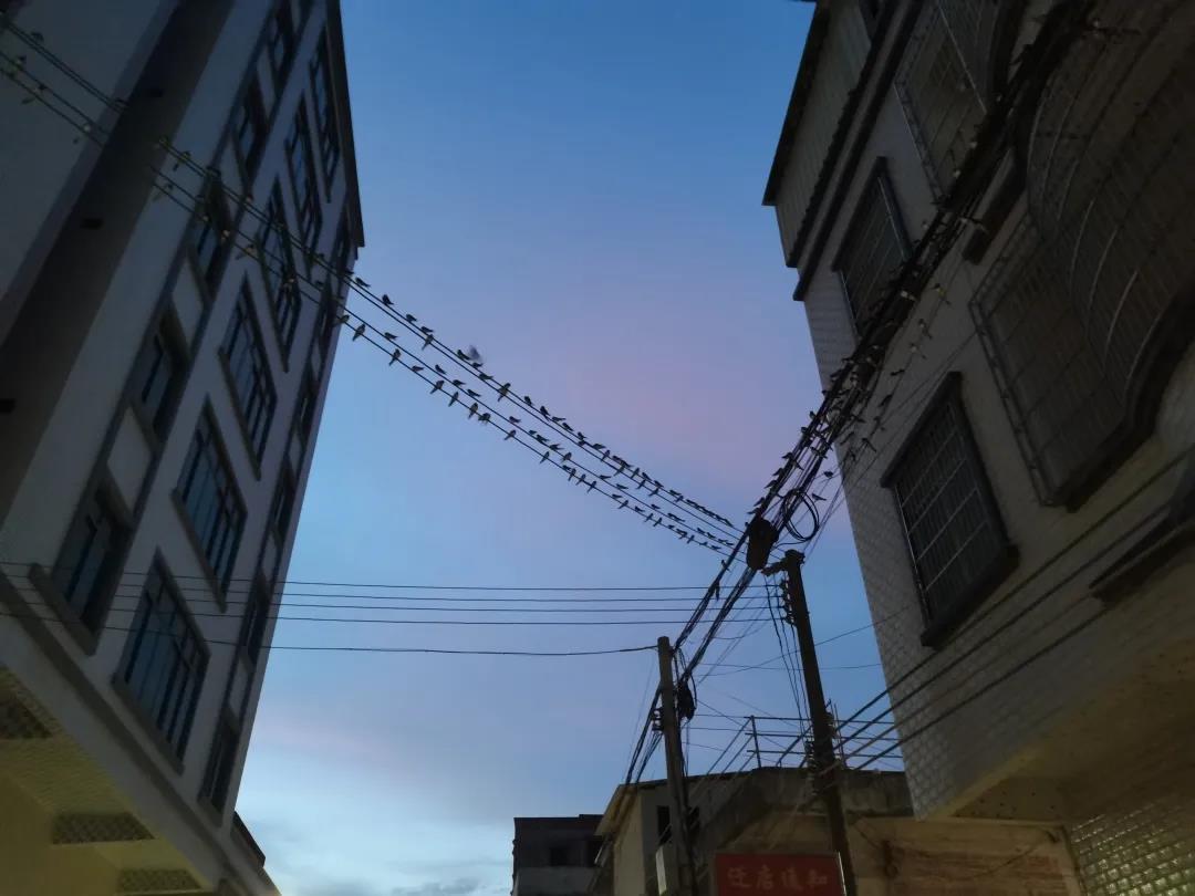 我们回住所的路上看见站在电线上成群的叽叽喳喳的小鸟,像极了五线谱上的音符,在歌唱夏天的欢乐也在歌唱我们充实的一天。