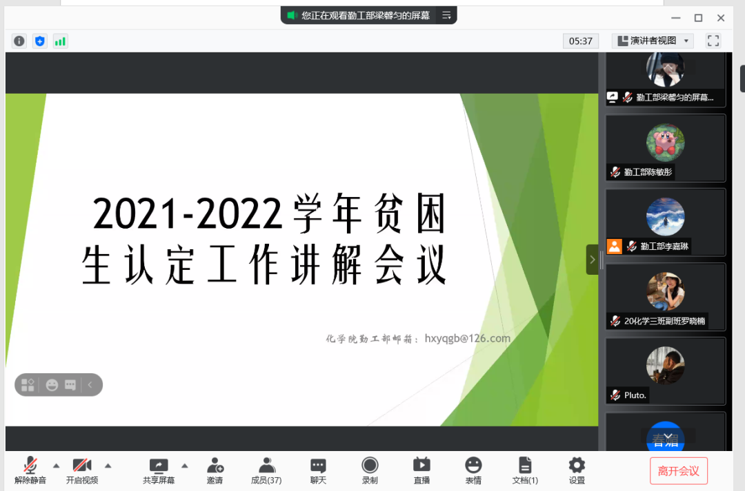 本次会议旨在推动化学化工学院2021-2022学年家庭经济困难学生认定工作的进行。经过了本次会议,各位副班和助班都对贫困生认定工作有了进一步的认识,这对后期工作的有序进行打下了良好基础。化学院将加强干部与副班、助班之间的沟通,切实保证各项学生资助政策的落实。