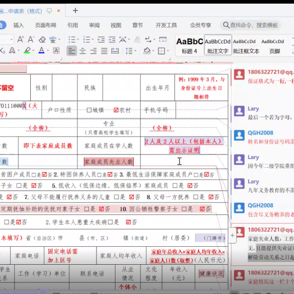 会议前期,学生助学中心勤工部干部给所有助班以及副班发送了相关材料和模板,并要求他们提前浏览模版,熟悉文件,对不理解处进行标注,以便在会上提出并解决;会议期间,干部们对2021-2022学年岭南师范学院家庭经济困难学生申请工作进行讲解,即对需要填写的附件,以及其格式要求和对应需要上交的证明材料进行讲解,并且强调需要区分上交的材料中纸质版和电子档,还明确了一些简单的信息录入中对于格式的统一要求。在会议中,干部们在每一个附件讲解结束后都给足时间让副班对有疑问的地方进行提问,然后由干部们一一解答。此外,干部们还讲解了开展民主评议会议的注意事项,18-20级副班要在组织会议时确保申请者和评议小组成员全员出席,从而保证每一位申请人情况的属实性。