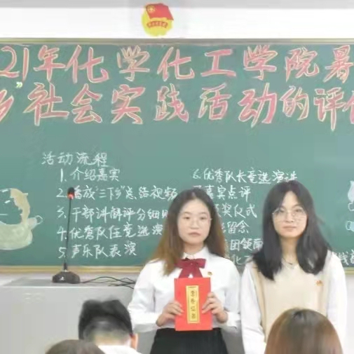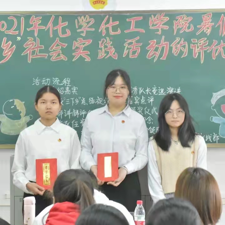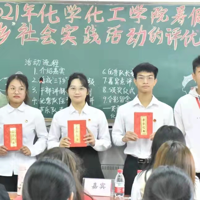 化学化工学院学子在2021年“三下乡”暑假社会实践活动中凝心聚力,再创佳绩。为了表彰今年“三下乡”中表现突出的队伍及个人中的优秀队伍及个人,弘扬实践精神,化学化工学院于11月28日上午在燕雷楼D栋301室举办2021年暑期“三下乡”社会实践活动之评优会议。校团委社会实践部干部赵小华、高帅,化学化工学院团委副职负责人曾雪琪,各班代表及17支实践队伍代表出席了本次会议。