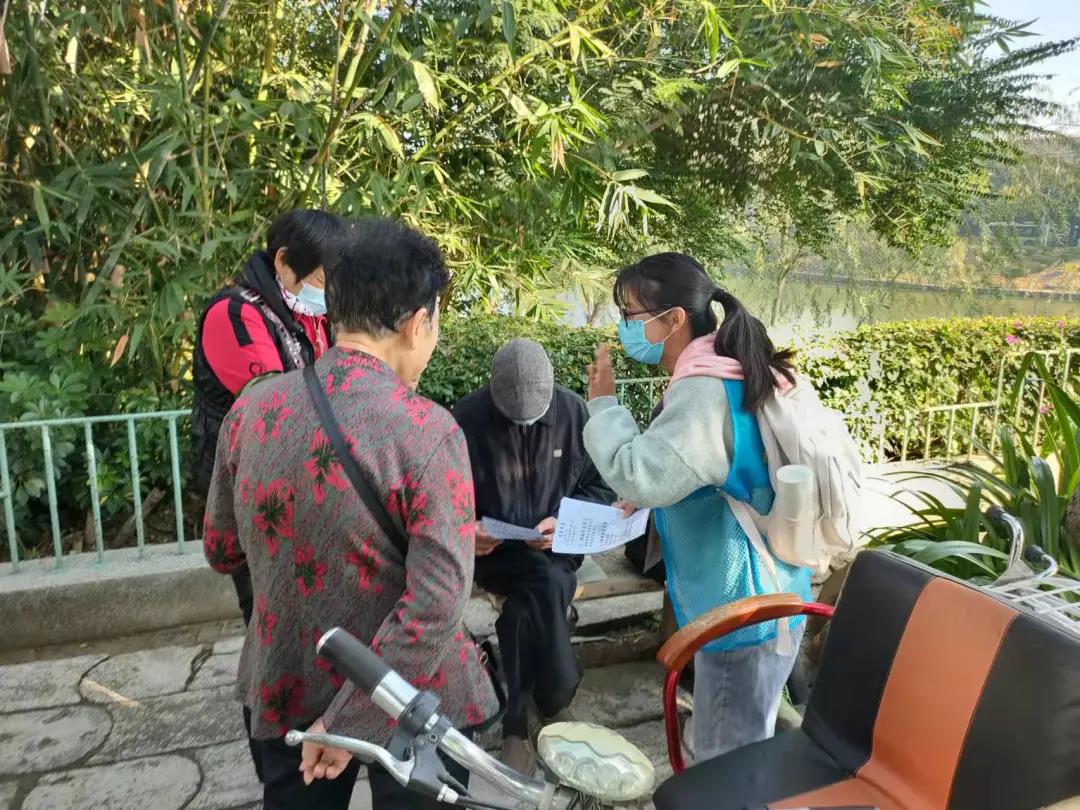12月5日早上9时,化学化工学院团委青年志愿者协会组织的“溢暖”服务队于寸金桥公园开展爱心宣讲会活动。本次活动旨在为中老年人讲解遇到特殊情况时的处理方法、普及现代最新的骗子招数、分享一些健康小知识和缓解关节疼痛的小技巧。