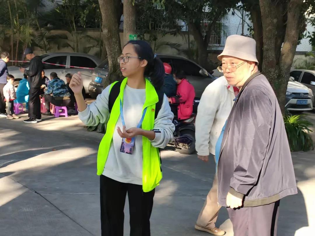 青协干部组织各队员有序布置现场,分配宣讲任务,向中老年人介绍宣讲内容并邀请他们参加宣讲活动。队员们齐心协力分工合作,一切准备就绪。