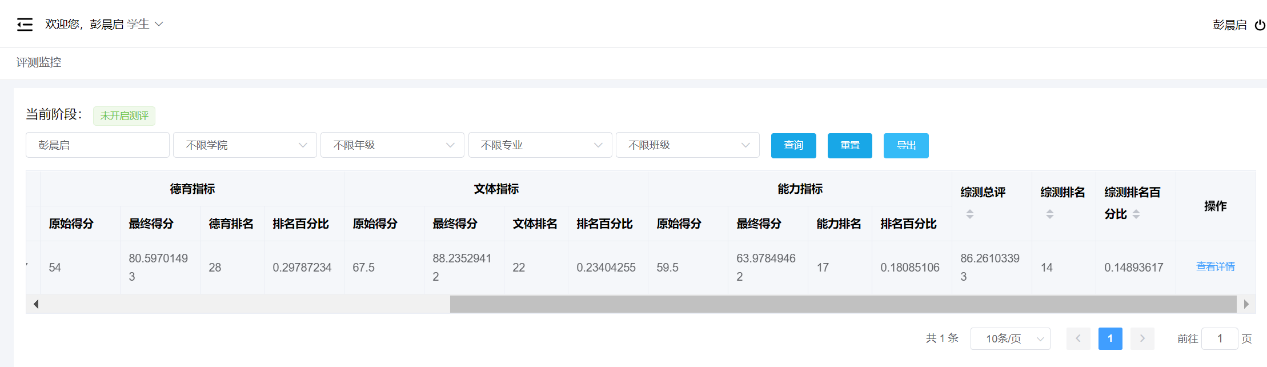 1、九月份完成了2020-2021学年18-20级的综合测评工作。