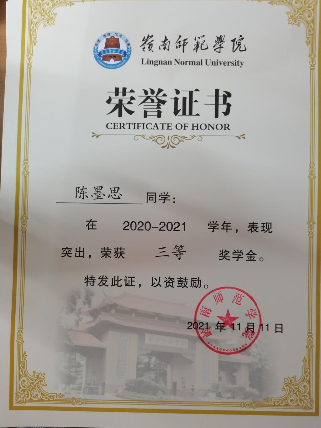2、完成2020-2021学年度奖学金及“卓越岭师奖项”奖状的下发,及18级奖学金签领事宜等。