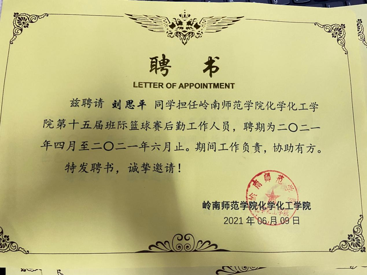 ⑤2021年12月,负责院运会、校运会运动员、裁判奖状、聘书的打印、落实;召开部门总结会议。