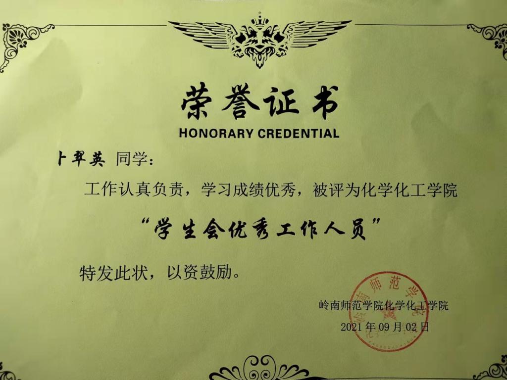3、十一月份完成了2018-2020级年度鉴定表的填写盖章工作,并成功举办了化学院“2020-2021学年度先进班集体暨优秀班长”评选活动;协助各机构各部门顺利开展校运动会。