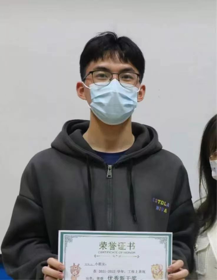 在工作上,我是院学生会学习部的副职负责人,并在2021年被评为化学化工学院“学生会优秀工作人员”。
