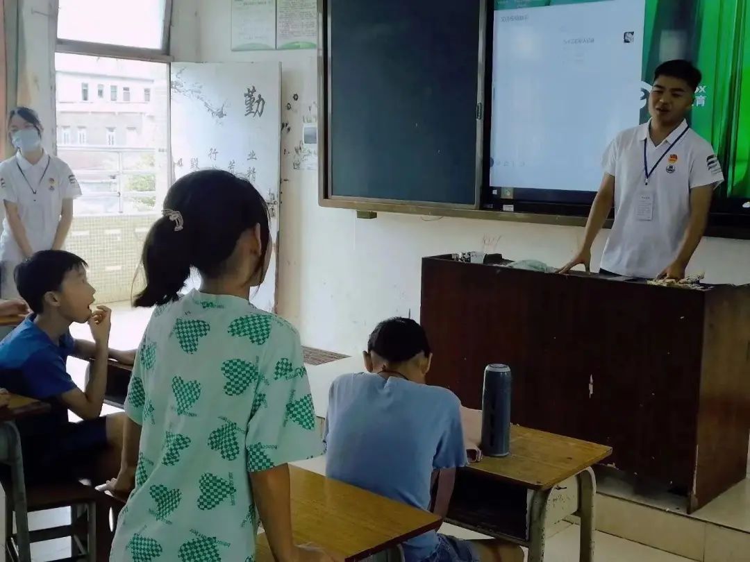 保护环境,从小开始抓起。今天调研小组全体成员走进当地年幼群体,将环保知识带进支教课堂,为山口小学四年级的学生带来了一节有趣生动有意义的课堂。调研组成员陈柏宇给学生们讲述了环境污染的七种类型和四种危害,用小问题带动小学生们思考加深印象,用视频切实生动地讲述环境污染对大自然的破坏。其余成员协助组织好课堂纪律,做好课堂记录。除此之外,还协助主讲成员陈柏宇动员学生们积极参与进课堂。在全体调研组成员和支教组的默契合作和小学生们的活跃配合下,环保教育课堂顺利结束。