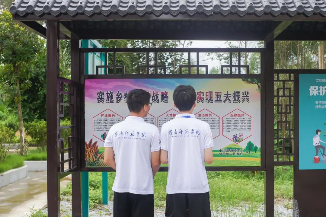 “实施乡村振兴战略,全面实现五大振兴”这行字很快吸引了实践队队员注意。“产业振兴、文化振兴、人才振兴、生态振兴和组织振兴这五大振兴是乡村振兴的重要方向,我们要好好把握这几方面进行调研。”实践队员徐铭燊在笔记本下做下记录。