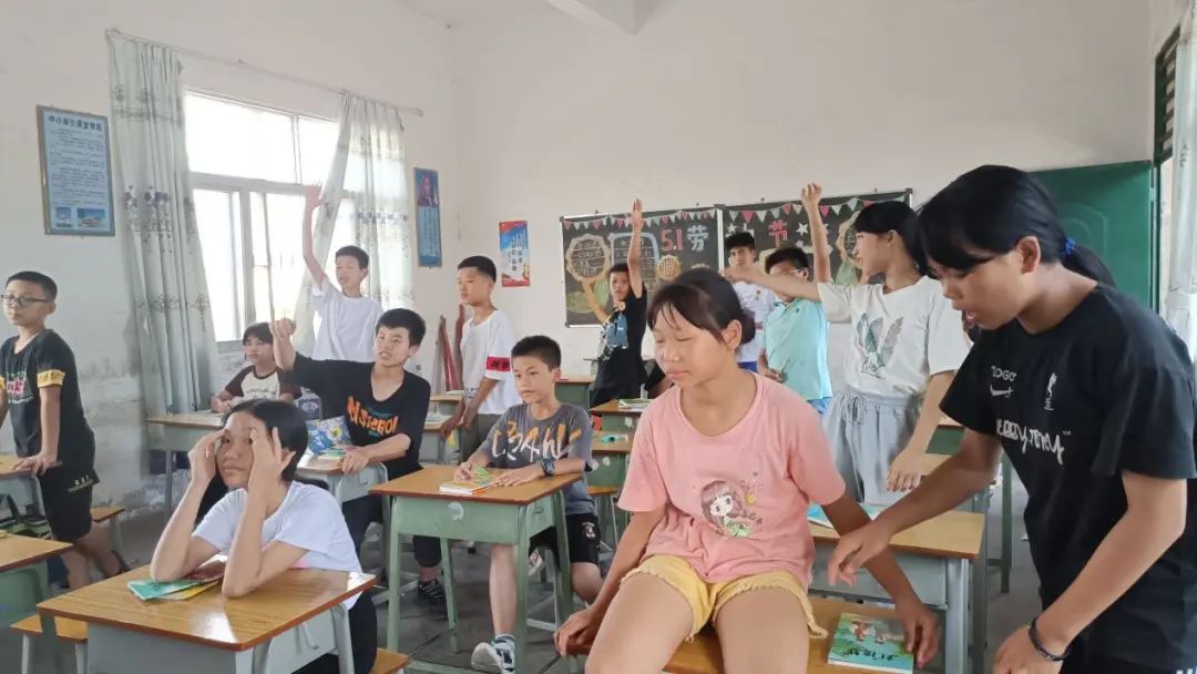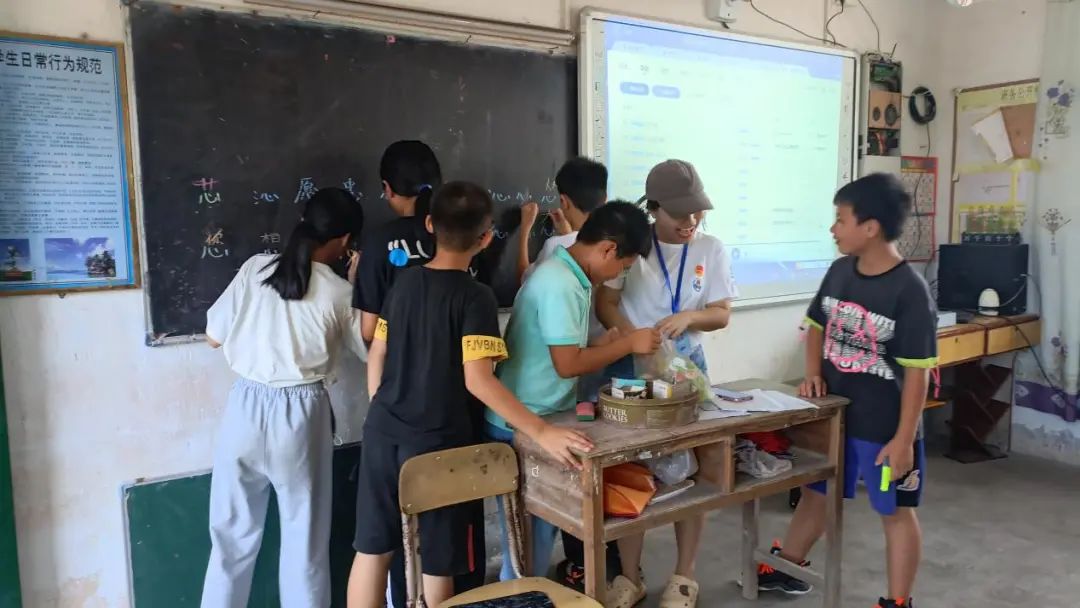 7月16日上午,实践队的活动开展都十分顺利,同学们和队员之间也有了一定的了解。“破茧逐光”实践队队员打算乘胜追击,与学生们继续开启美好的篇章。实践队队员们便采用了理论和实践相结合的方式,开展下午的“三下乡”活动,让学生们得到全方面的发展。