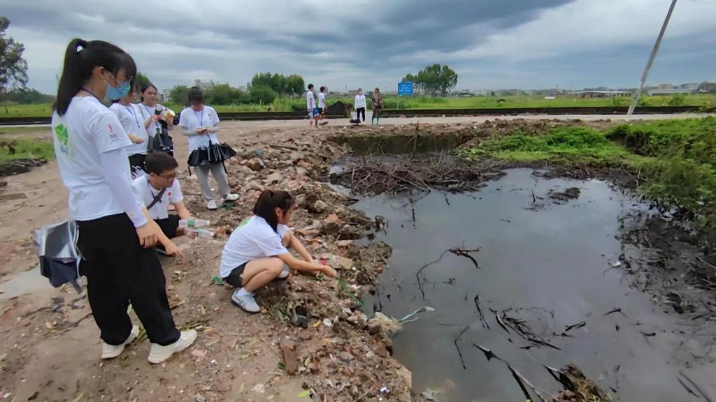 岭南师范学院“环保·寻路”社会实践队调研组水体采样到此结束。他们的就地取样,为调研当地的环境污染提供了更加真实、可靠的数据。
