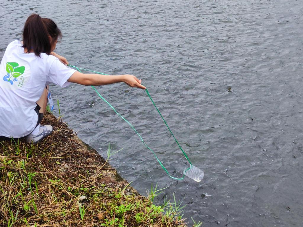 为充分发挥实验的潜能,提高调研数据的准确性,推动调研工作的圆满完成。7月6日上午,岭南师范学院“环保·寻路”社会实践队赴同庆镇附近水域进行水体取样。其工作主要负责人为调研组组长冯思琪,调研组全体队员协同参与。