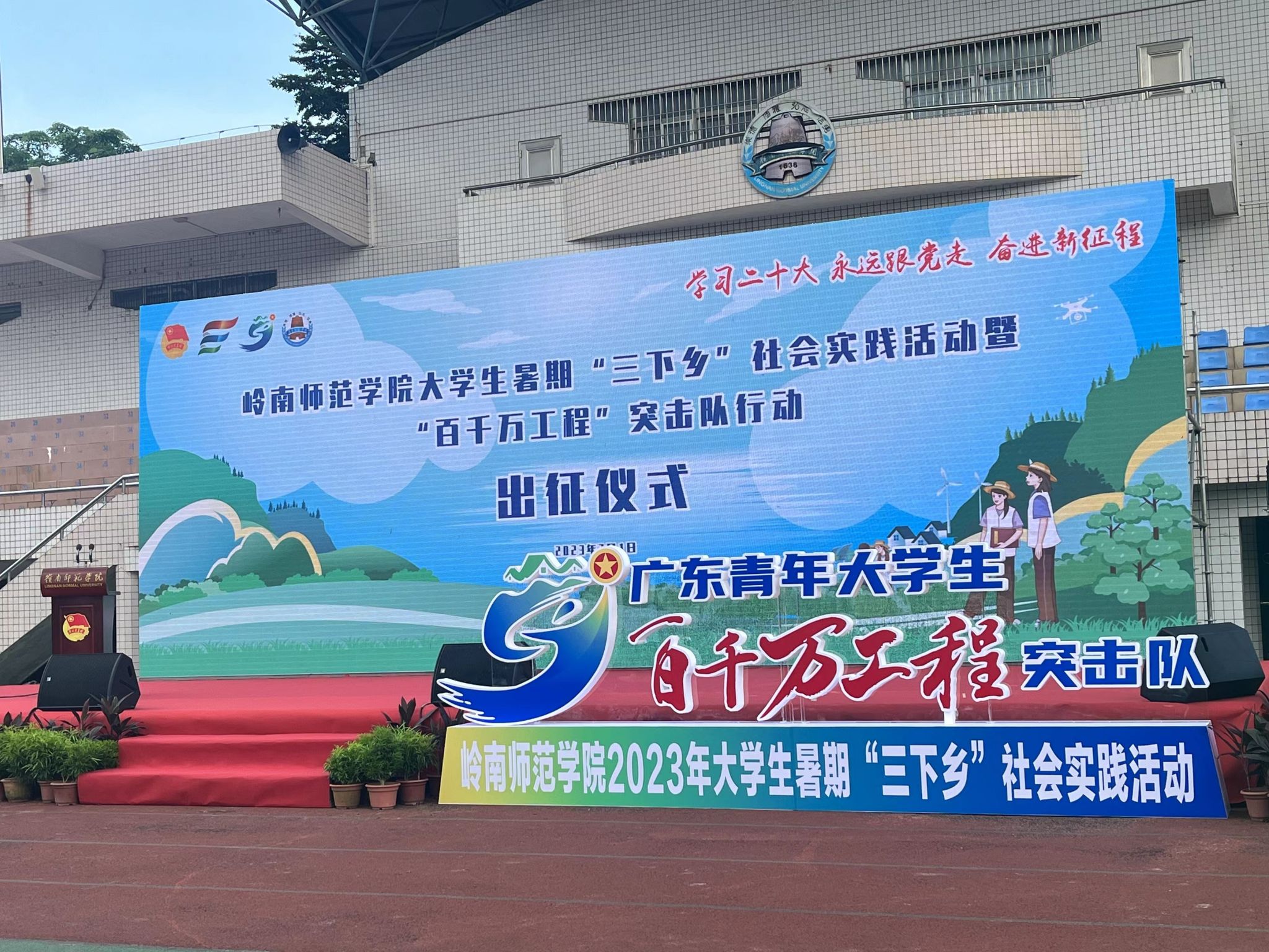 7月1日上午,岭南师范学院大学生暑期“三下乡”实践活动暨“百千万工程”突击队行动的出征仪式于田径场顺利开展。本次活动增强了同学们历史责任感和使命感,激发强国有我的精神。