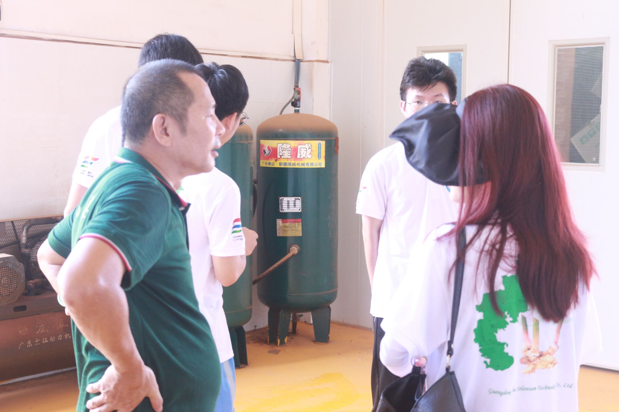 团队成员走访生产车间,了解生产的整个流程。从姜农手上收购高良姜后,需要进行静置、清洗。在完成好这两个步骤后,方可进行下一步生产。切片后需要进行干燥,目前主要的干燥工艺有两种,太阳晒干和机械烘干。工人介绍道,徐闻光照充足可以很好地进行露天晾晒。但由于天气多变,在阴雨天时可以通过机器进行干燥,这往往也会增加生产成本。