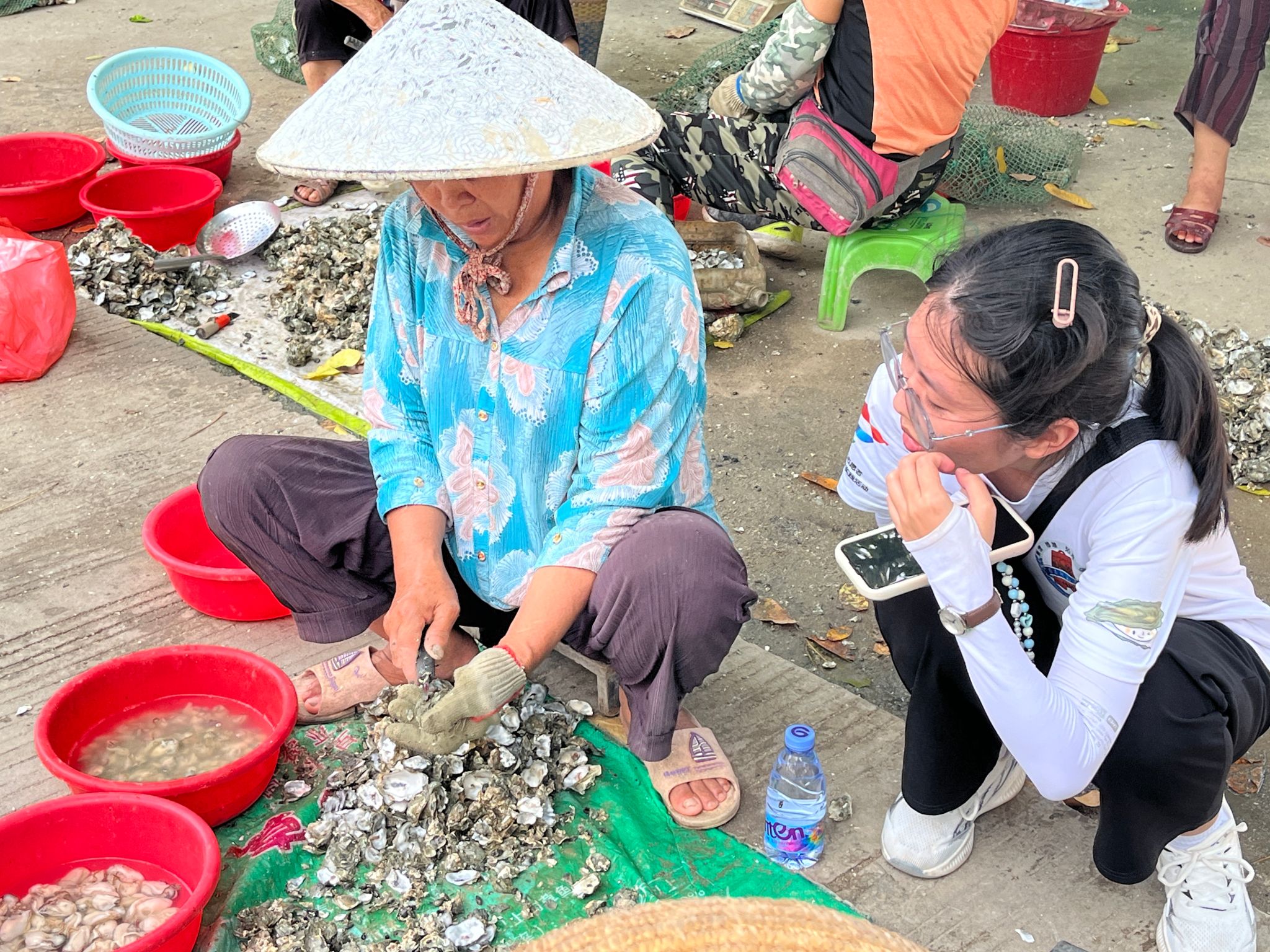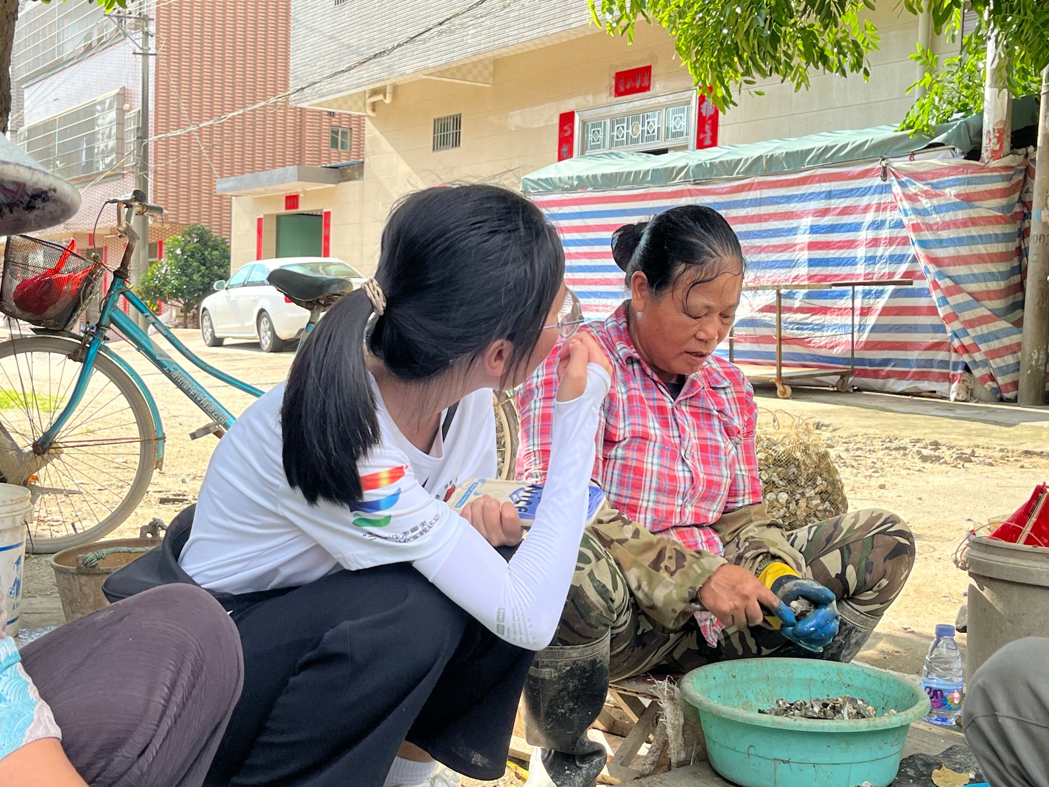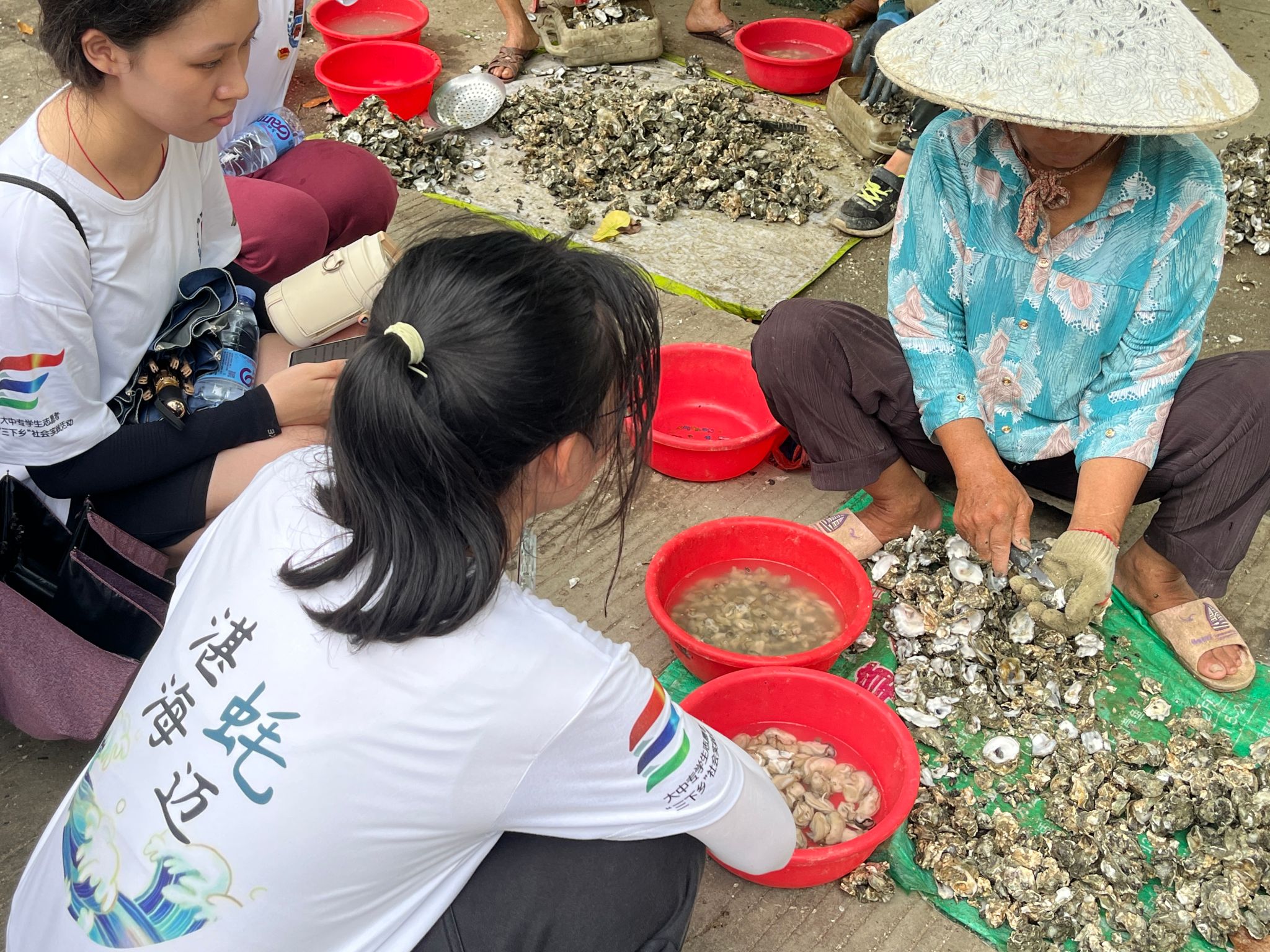 下午16时左右,队员们到达指定地点对生蚝销售个体户进行采访调研。销售生蚝的阿姨们大多十分友好,工作开展得十分迅速。