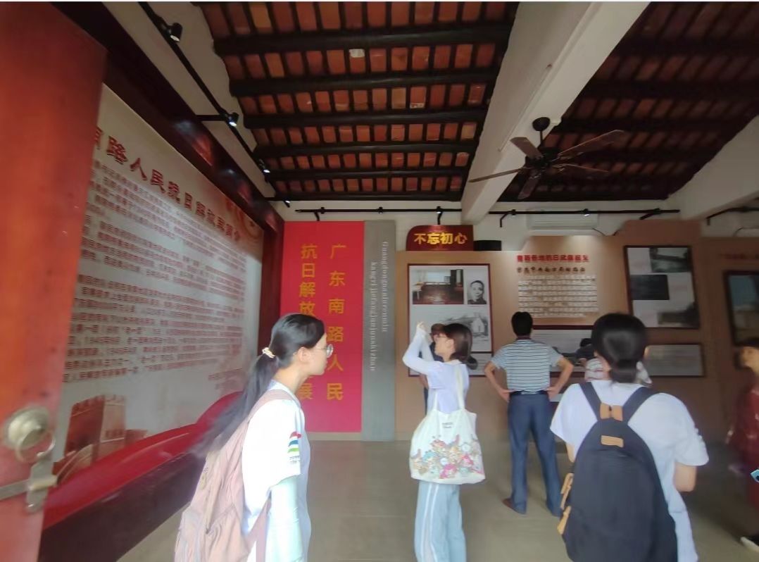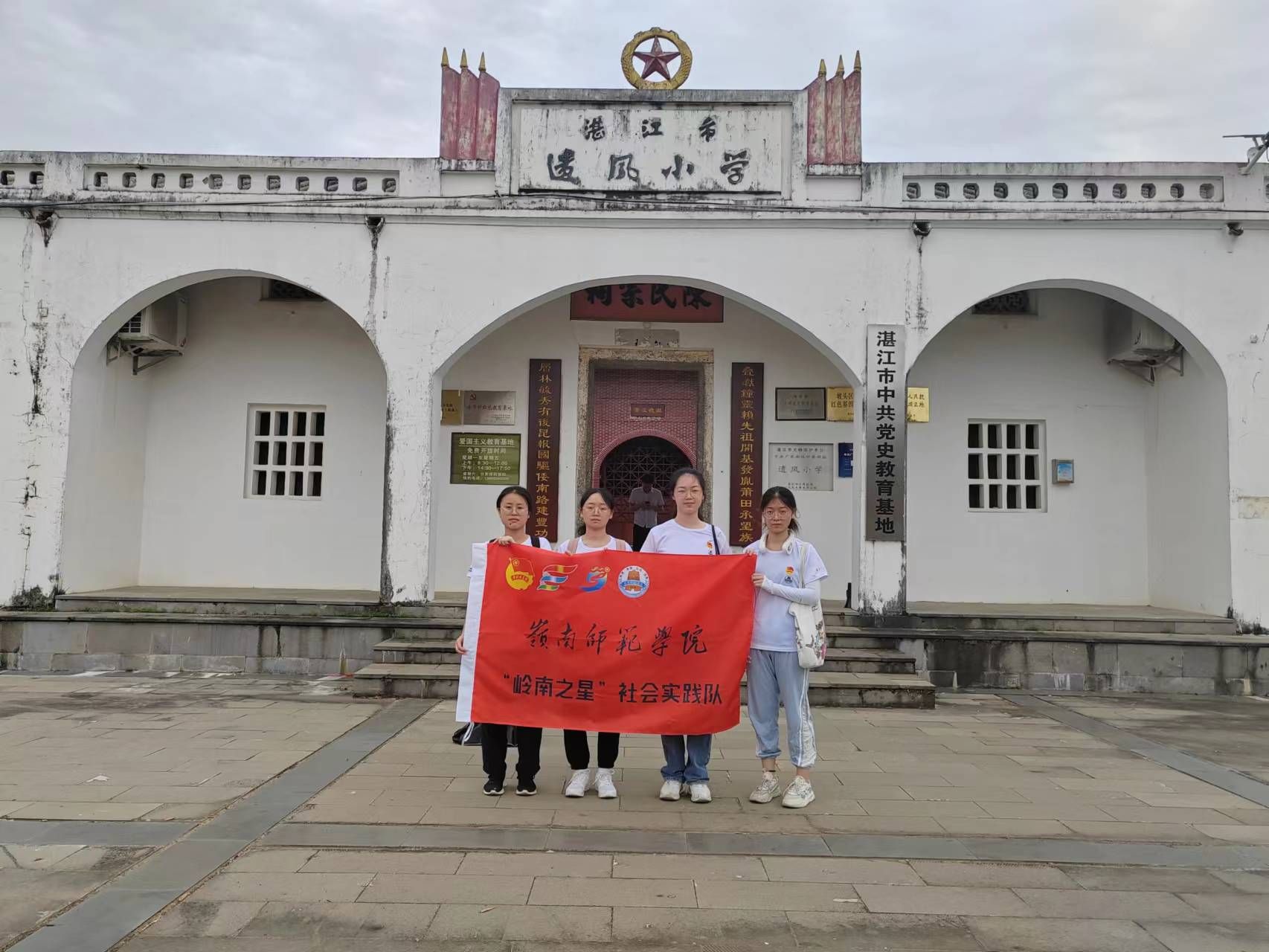 7月2号,“岭南之星”社会实践队队长李敏坚带领朱华锐、黎希彤、刘付晓婷三名队员,于八点半在岭南师范学院南门骑电动车出发,前往湛江市坡头区泮北村的遗风小学进行调研参观学习。遗风小学内有丰富的广东南路人民抗日解放军史资料,为队伍进一步了解南路革命提供了素材。在调研学习的过程中,队伍发现后面陆续很多人前来学校参观学习革命史资料,感受到了群众对于南路革命历史学习的热情。