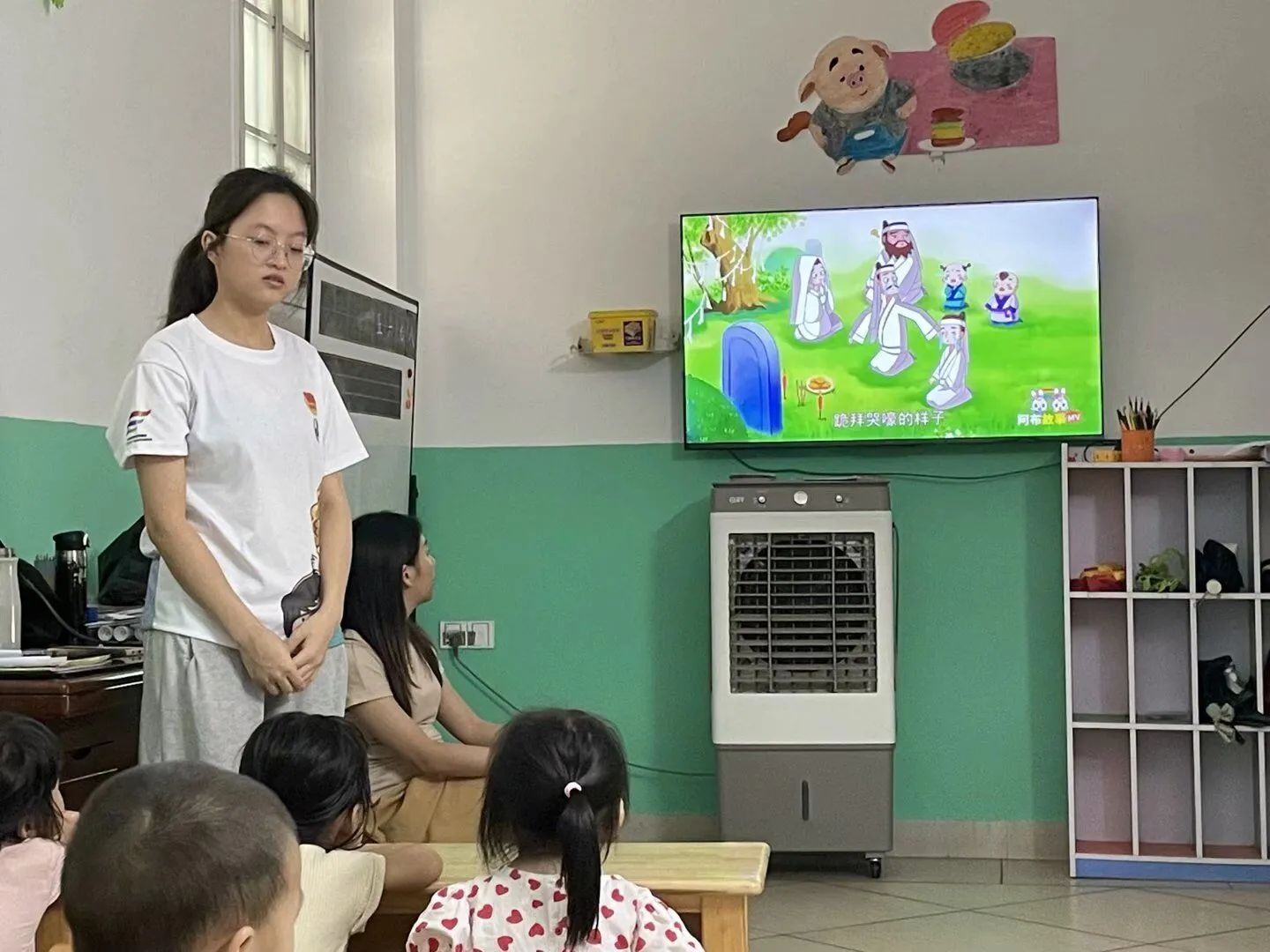 随后,小郭老师给小朋友们讲了”孟母三迁“的故事,让小朋友们明白了教育和环境的重要性。在场的小朋友们都看得津津入味,乐此不疲。