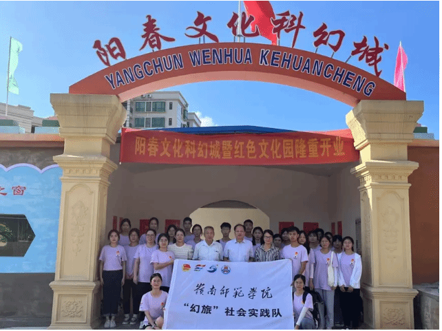为深入贯彻落实党的二十大精神,响应乡村振兴的时代方略,7月7日,岭南师范学院化学与化工学院“幻旅”社会实践队在阳春市春湾镇阳春科幻文化城附近进行女书文化调研活动。
