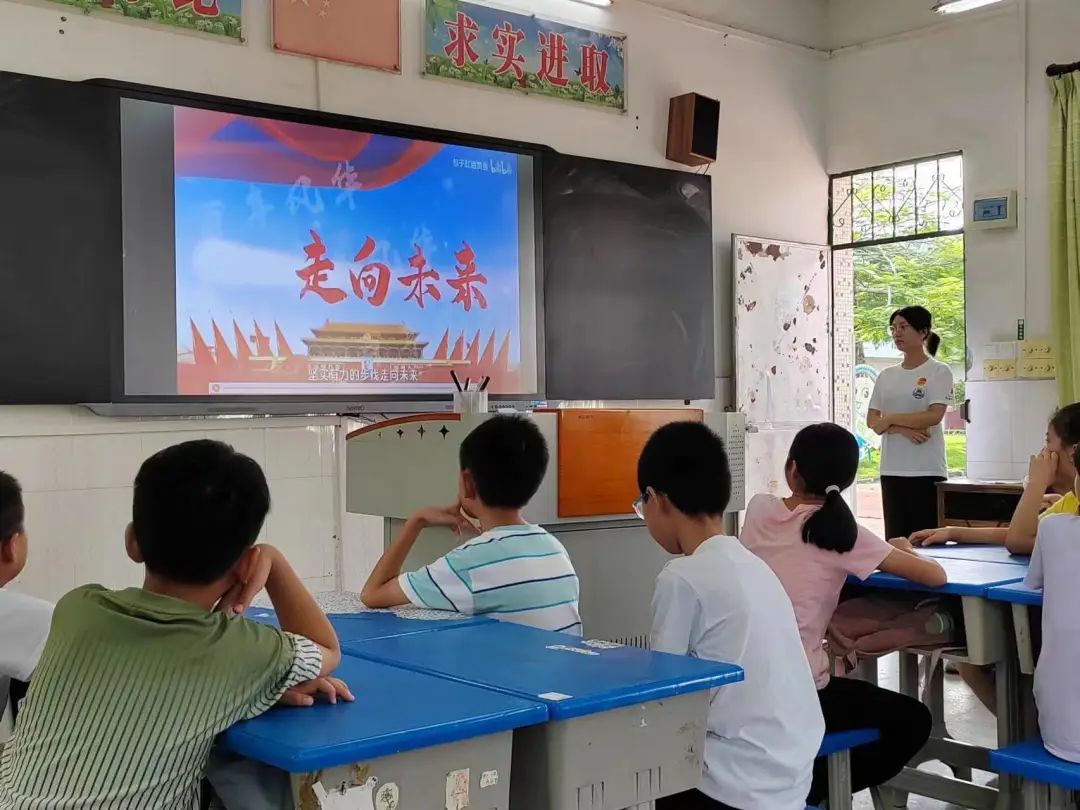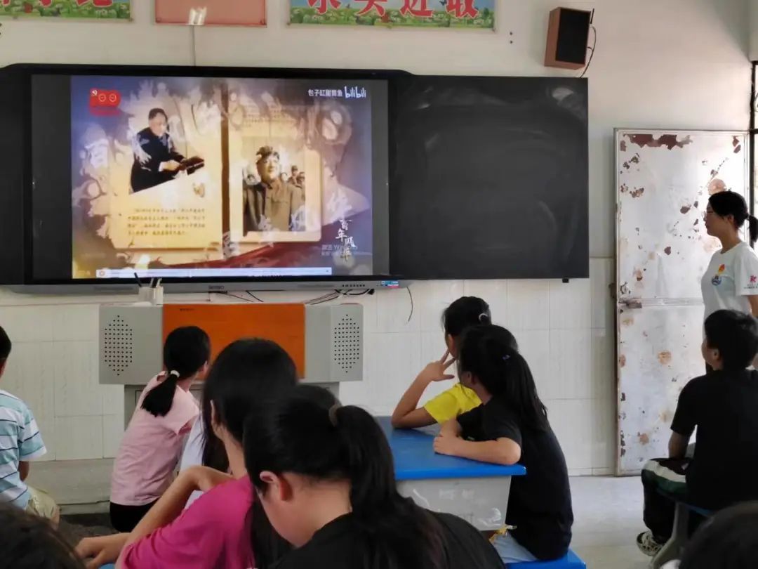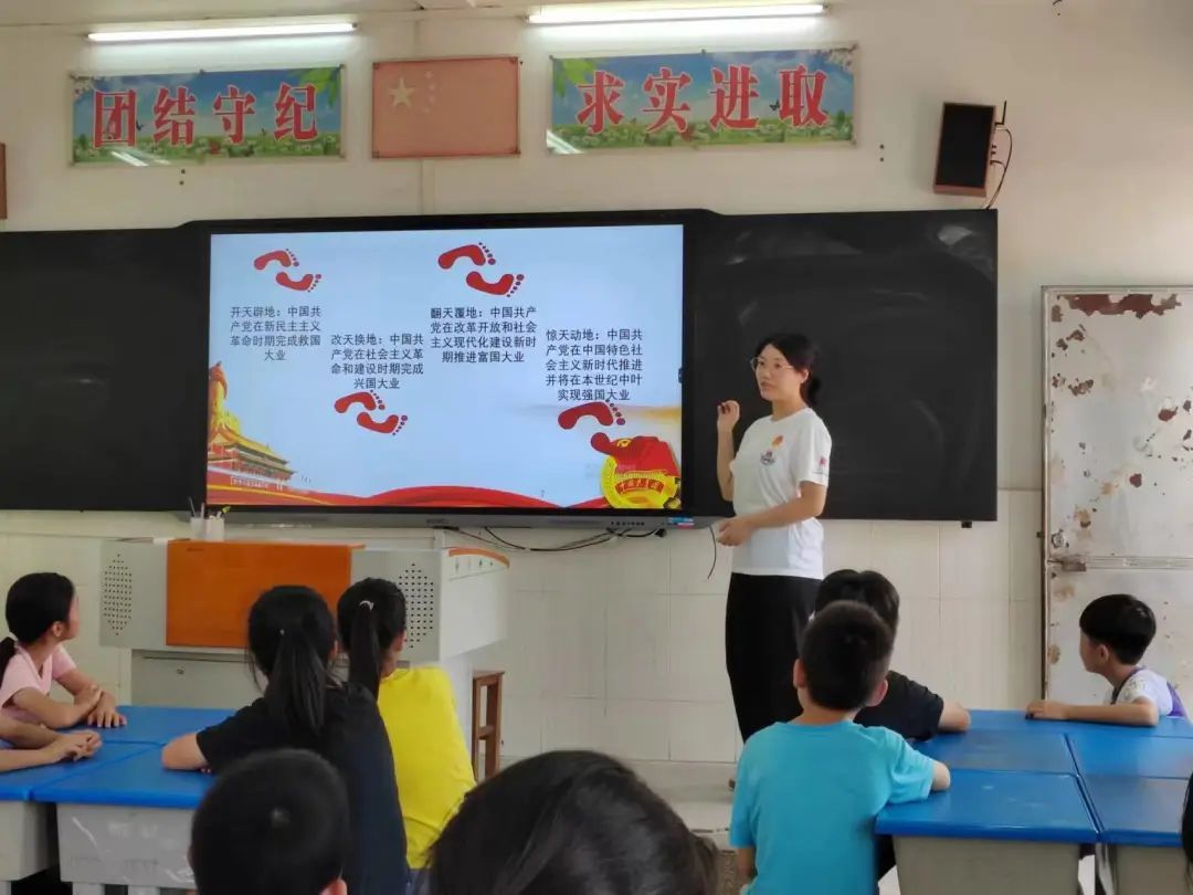“同心振乡”实践队特意设置了党史教育课,由队员吴嘉雯进行讲解,加深学生们对党的了解。