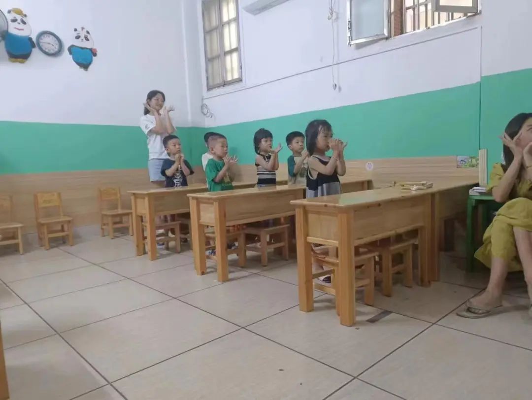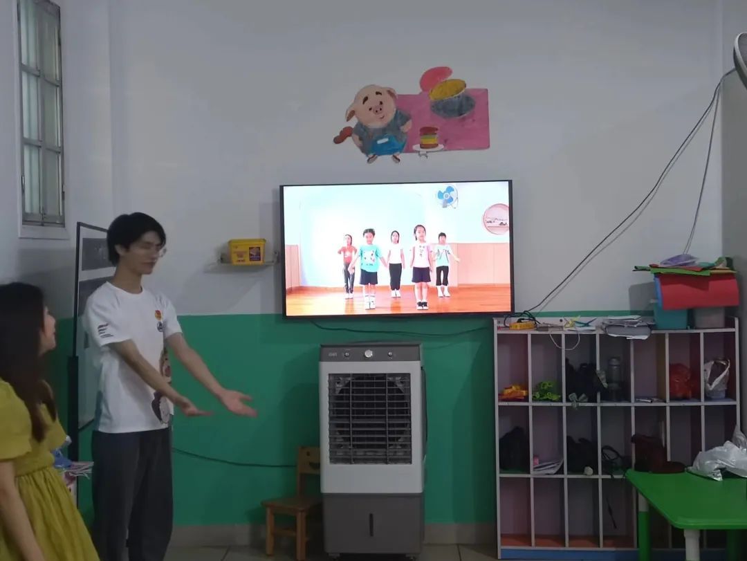 老师艺鹏在教孩子们手势舞