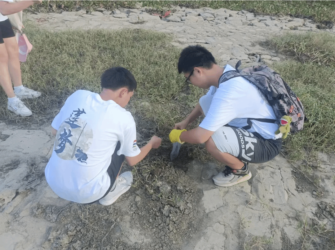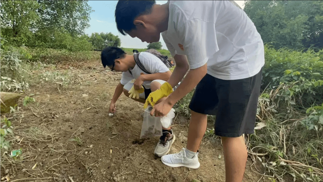 当天下午,“莲梦”社会实践队队员们来到鉴江供水工程现场附近,认真采集土壤样本。他们使用专业的采样工具在水库附近的不同地点认真采集多份土壤样本,并按照科学方法对每个样本进行了封装和标记,确保其完整性和可追溯性。这些样本将被进行土壤电导率和PH值检测,以了解土壤的盐碱化情况和酸碱度水平。