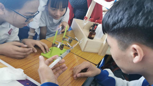大家先观摩了实习生林梦圆同学在高一(28)班的实习汇报课《硫和二氧化硫》。本节课以实验探究为取向,运用了我院特色的微型实验仪器,让学生亲自动手实验,直观地感受实验现象,增强学生的感知能力,从而更深刻认识和理解二氧化硫的化学性质。这体现了学院开发的微型仪器的量小安全、操作方便的优点,让同学们在课堂上真实地感受到化学的魅力和神奇。