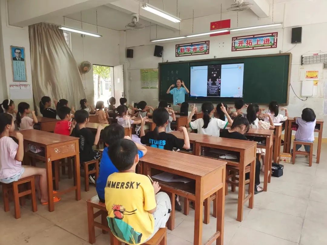 为了丰富学生的课堂,“岭梦”社会实践队队员根据自身所学为塘口中心小学学生开设别具特色的音舞课,不仅舞动了孩子们的手指、展示他们唱歌的本领,还舞动了他们的青春时光。