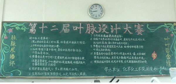 为巩固同学们的化学基础知识,激发大家的创新潜能,提高大家的动手实践能力,11月25日下午,化学化工学院在燕雷楼A栋705、706室举办第十二届叶脉设计大赛。