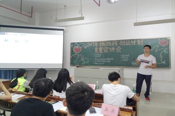 为积极响应“科教兴国”战略的号召,培养广大青年创新、创业意识,造就符合未来挑战要求的高素质人才,11月12日下午,化学化工学院团委创新创业部在燕雷楼D栋102室举办了以“活力岭师,畅享未来”为主题的2017“挑战杯”大学生创业计划竞赛宣讲会。出席本次活动的嘉宾有校创新创业实践中心副主任王春果、化学化工学院团委副秘书长罗敏仪以及往届优秀团队代表梁敏惠。