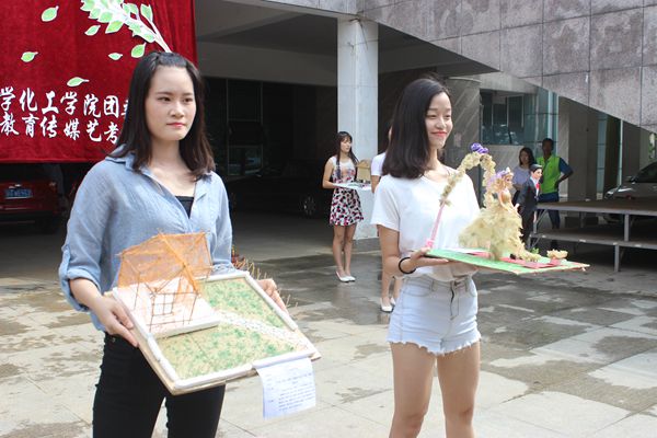 本次活动现场展示了在设计大赛中的获奖作品与其他参赛作品。这些作品充分体现了设计者的想象力和手工制作能力,也展现了化学的魅力。而且参加义卖的作品琳琅满目,有用叶脉砌成的田园小屋,也有用叶脉排列而成的风铃,还有用叶脉和一些金属、浮板设计成的岭师景点等等。