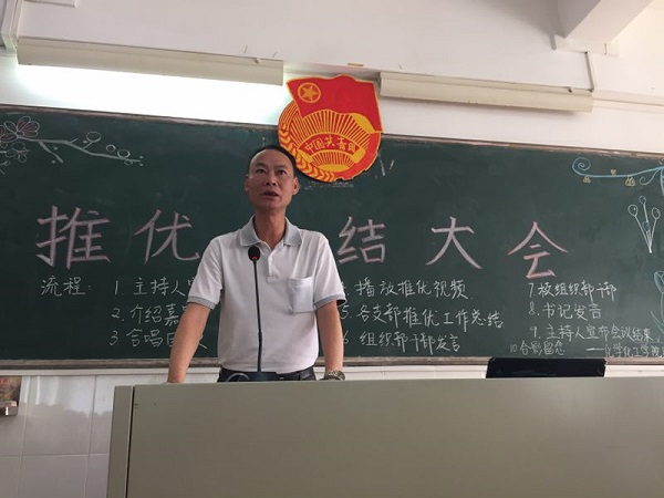 会议尾声,李梓副书记对本次大会作总结发言。李书记给大家讲解推优工作的意义:推优是为了给中国共产党选择优秀后备力量,同时也是作为党组织发展优秀青年加入中国共产党的积极表现。接着,他对各支部推优会场气氛和出场率以及推优各环节作出明确要求,并希望各支部总结经验并反思。同时,他希望推优成功的同学要更加严格地要求自己,而推优尚未成功的同学要力争上游,希望每位同学都要向更好、更高、更强的目标迈进。