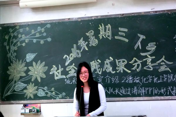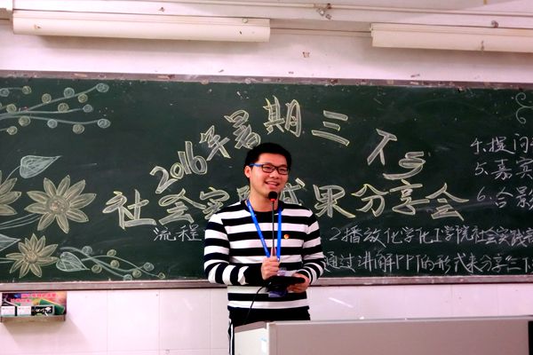 3月25日晚上,化学化工学院团委社会实践部在燕雷楼C栋313室举行2016年暑期“三下乡”社会实践成果分享会。校社会实践部干部邱艺涵、化学化工学院团委副秘书长陈铙瑶、严智聪、2015级部分社会实践队队长以及2016级各实践队队长出席本次会议。