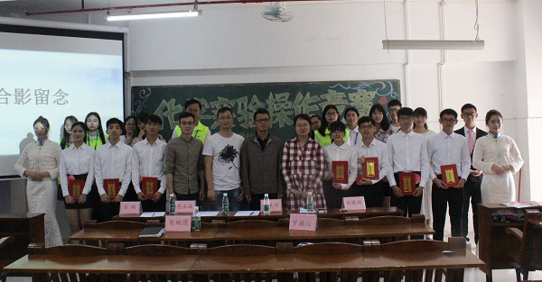 四位老师均对本次比赛进行了点评。刘晓颖老师表示化学实验操作竞赛是为了更好地把第一课堂和第二课堂联系起来,增强了第二课堂的学术性、专业性,降低其娱乐性,并建议选手们简练制作视频,在比赛时应现场配音视频,避免用原声以致影响视频最佳效果。惠永海老师认为实验竞赛能从侧面检验老师们的上课成效,希望大家用心对待,把好的视频保存下来作为教学课件使用。而晏蜻老师则认为这次活动是对课堂的延伸和补充,同时指出选手们在制作视频时要多注意细节,注重操作的规范性。刘生桂副院长做竞赛总结时表示,这个活动很好地引导同学规范操作,值得鼓励,同时也指出本次比赛的不足,建议同学们多学习化学相关软件的使用,并在实验中有创新意识,善于摸索课本外的知识,把实践与理论更好地结合起来。
