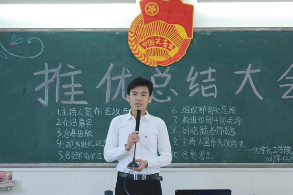为向党组织注入新鲜血液,引导广大优秀团员向党组织靠拢,12月3日上午,化学化工学院在燕雷楼C栋711室举行推优总结大会。化学化工学院刘晓颖老师、团委相关学生干部以及15、16级各支部代表出席了本次会议。